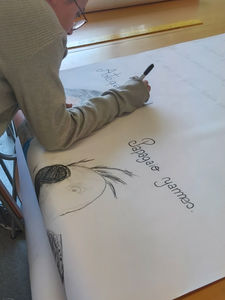 Os alunos trabalharam a história a Português. A seguir fizeram um poema que resumia a história. De seguida, numa oficina de escrita criativa, os alunos escreveram uma carta sobre a obra. As duas melhores foram escolhidas e transcritas e ilustradas para papel cenário com orientação da professora Edite Pinto. Por fim, gravou-se com dois alunos as duas melhores cartas.