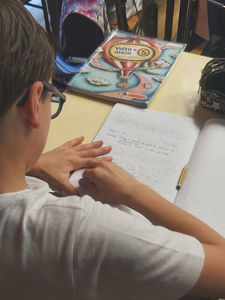 Os alunos trabalharam na aula de português a obra. Depois resumiram a história em poema.